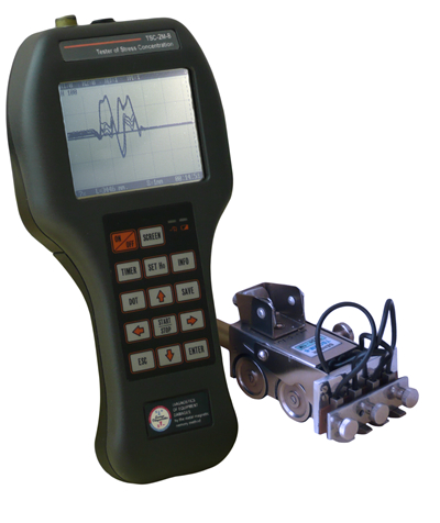 俄羅斯動力診斷公司開發的TSC-2M-8型8通道應力集中磁檢測儀是用金屬磁記憶法來測量、記錄和分析各種設備與結構件應力應變狀態的檢測系統。該系統可測定鐵磁性金屬的應力集中區(設備損傷的主要來源)和缺陷位置,找出設備的薄弱部位。